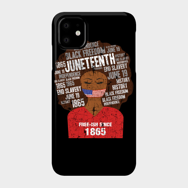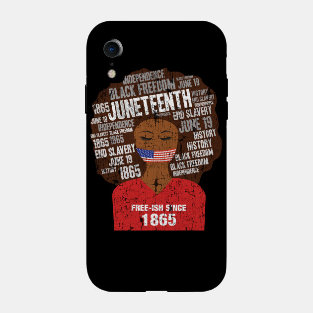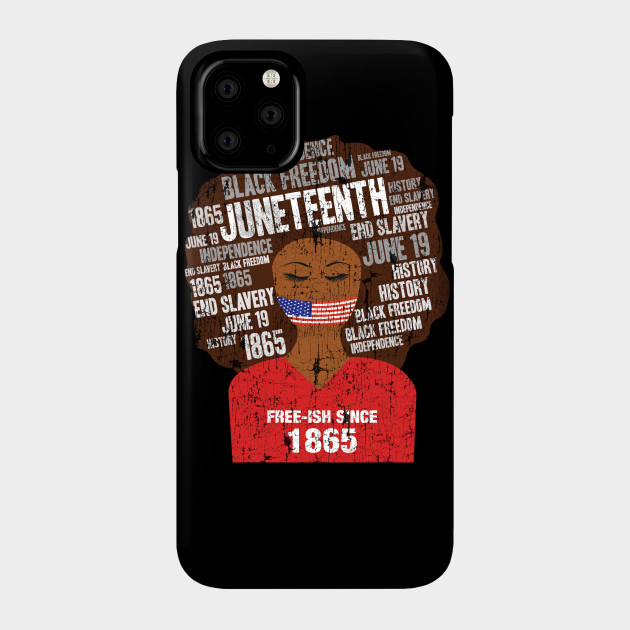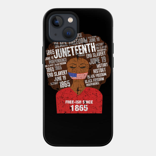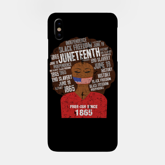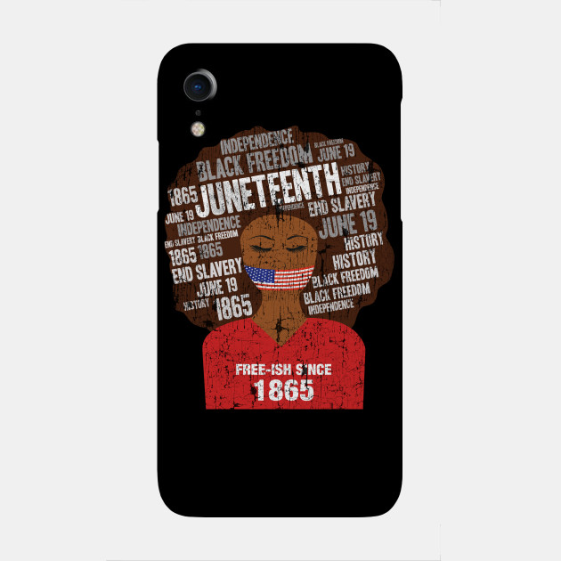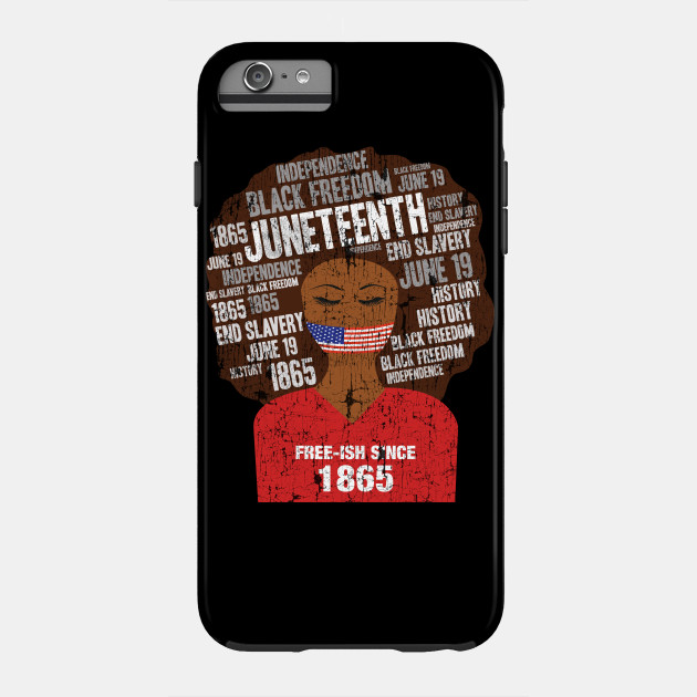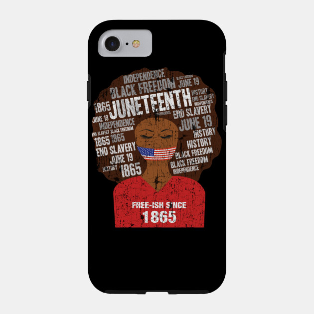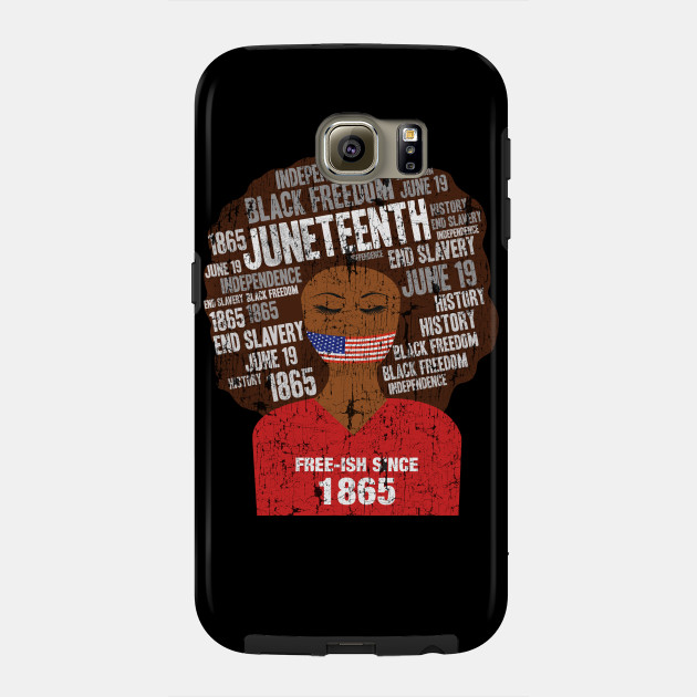 A black girl with a giant afro and the phrases Freeish since 1865 on her shirt. Nice to put on on Juneteenth or July 4th.
