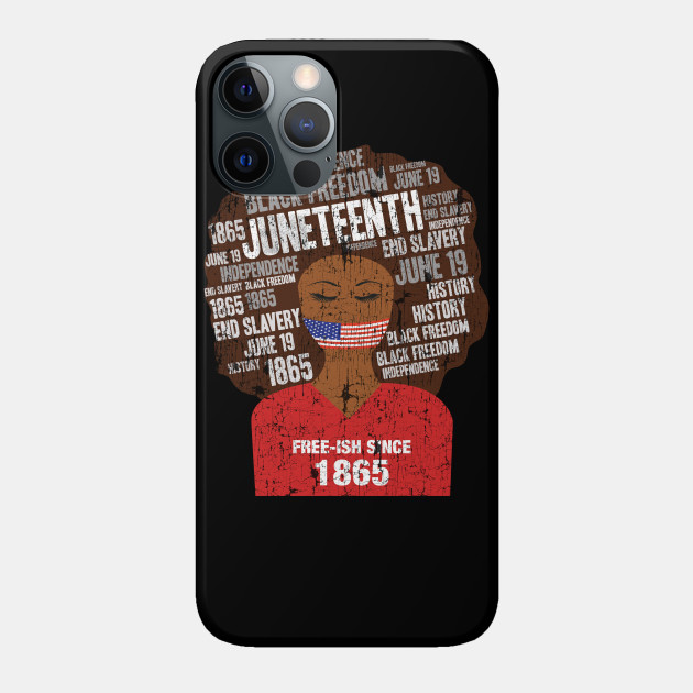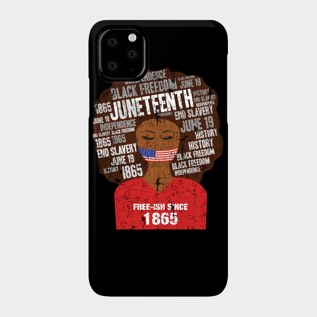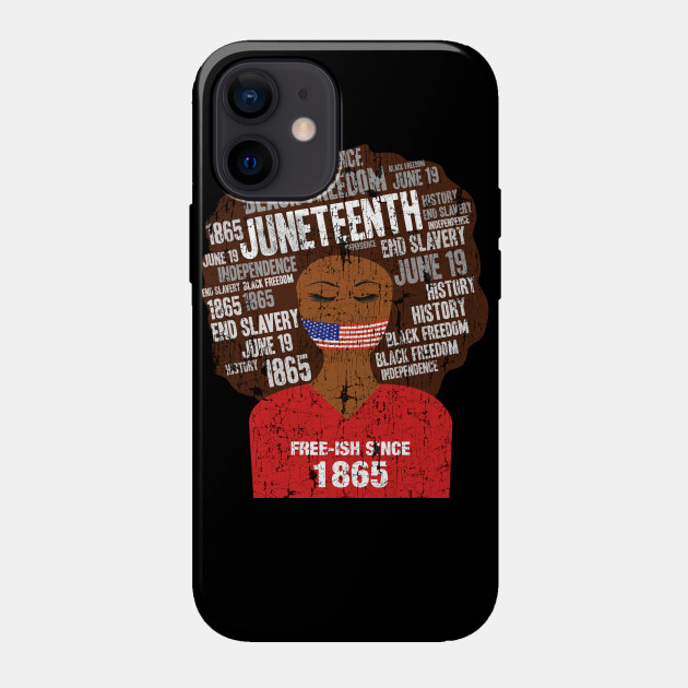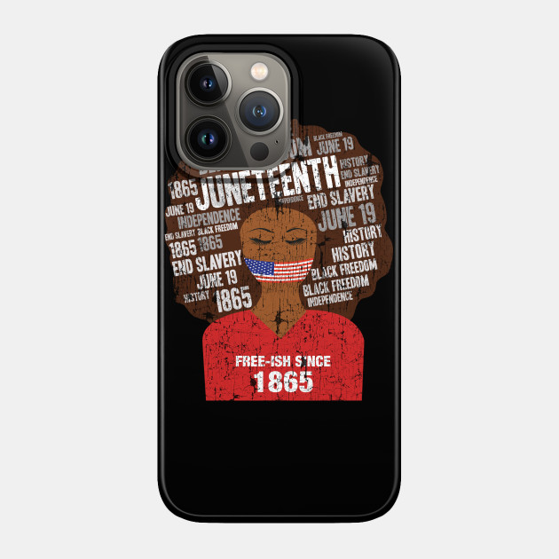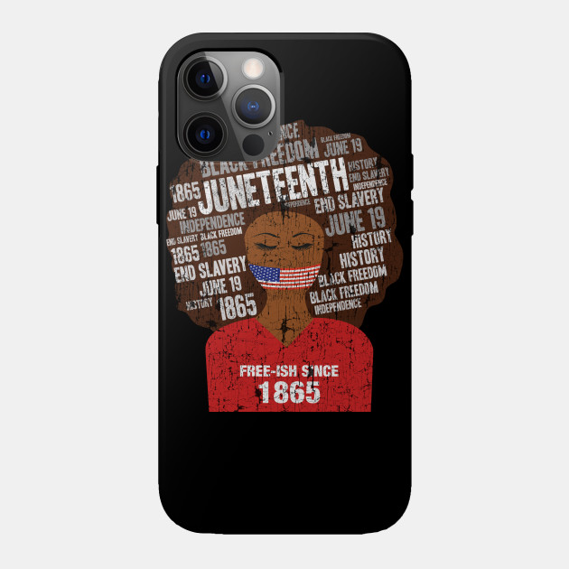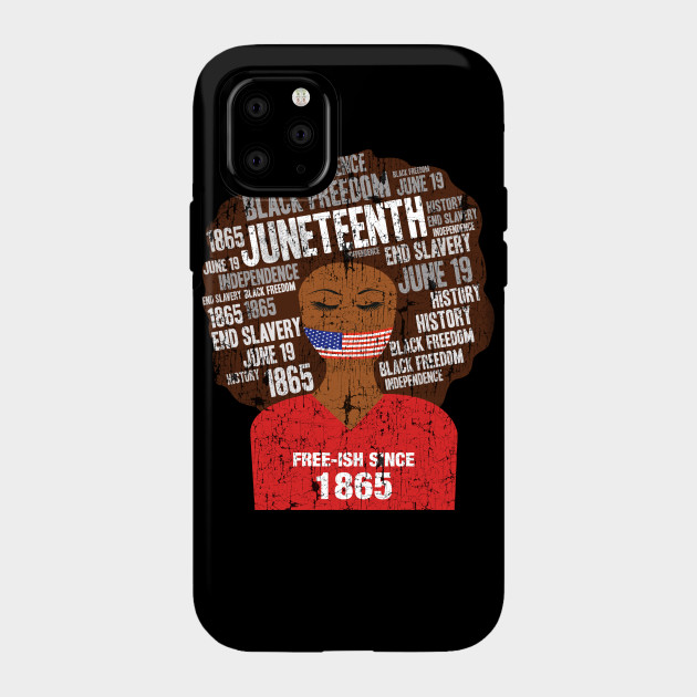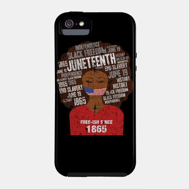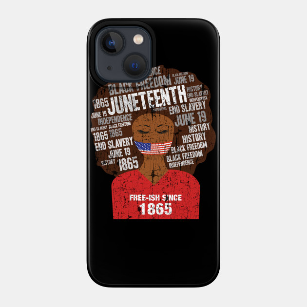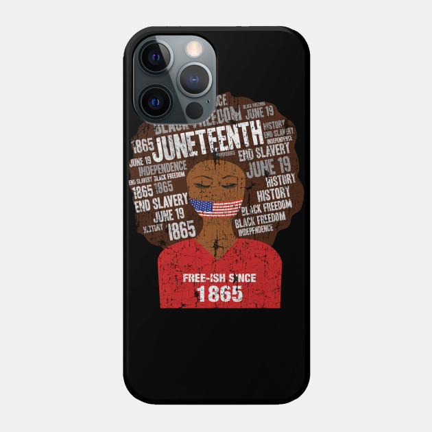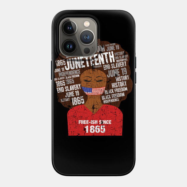 A black girl with a giant afro and the phrases Freeish since 1865 on her shirt. Nice to put on on Juneteenth or July 4th.
