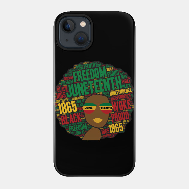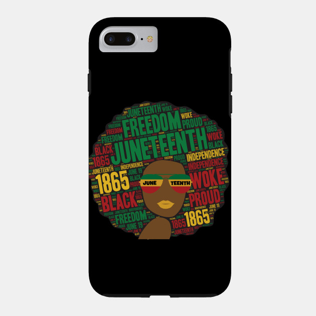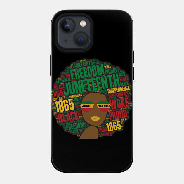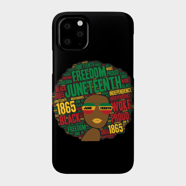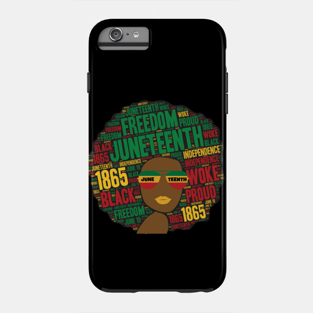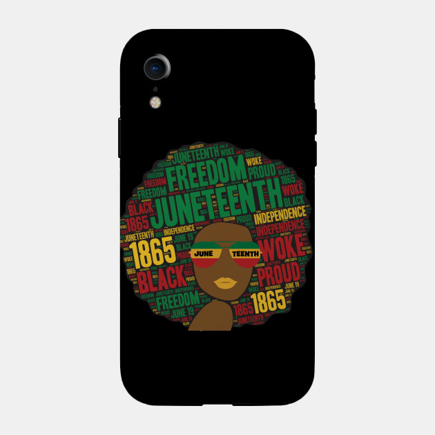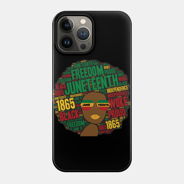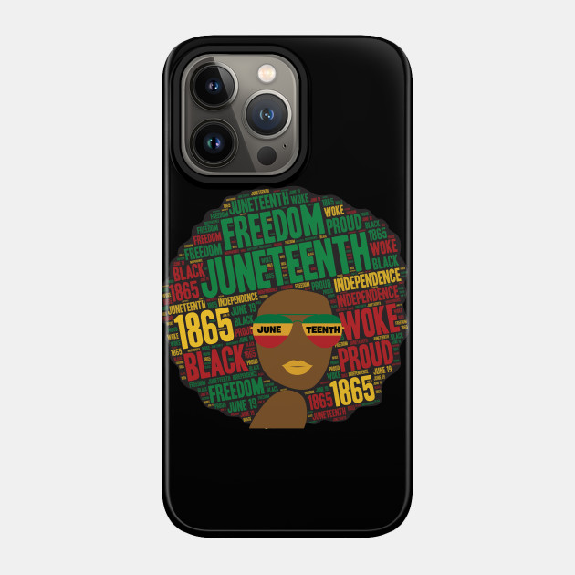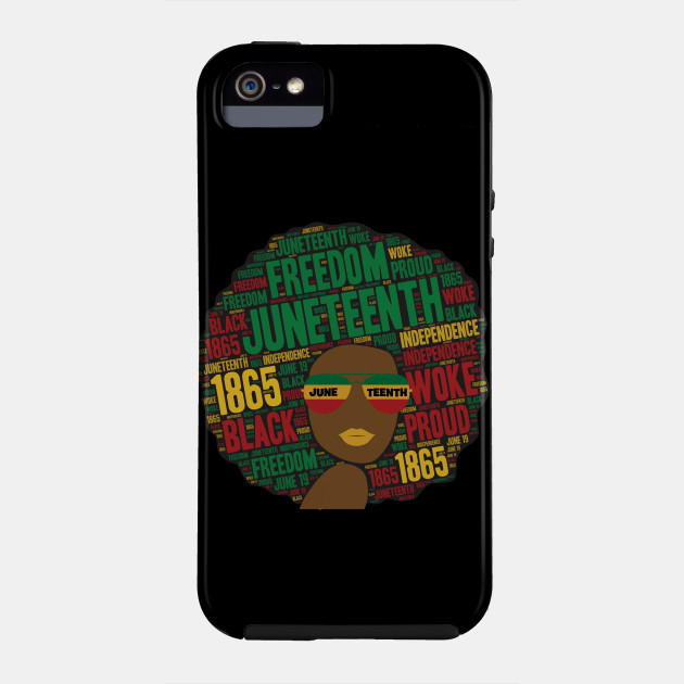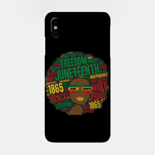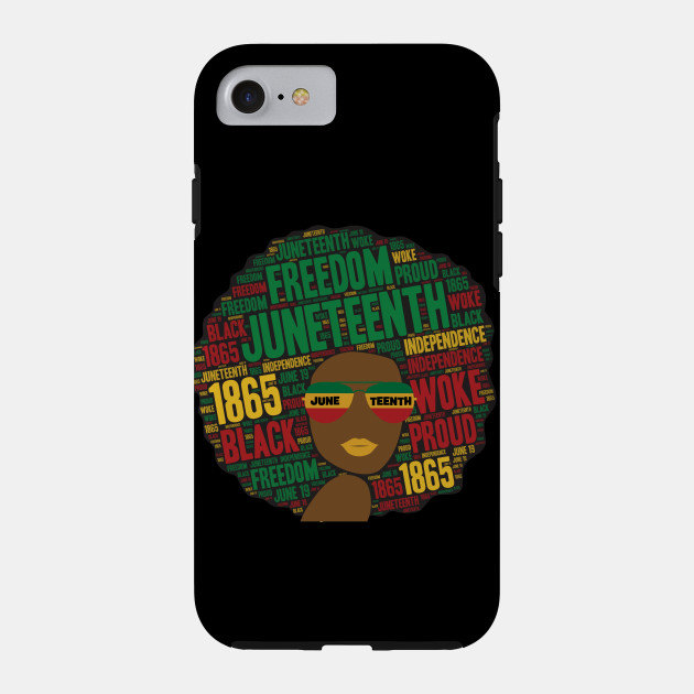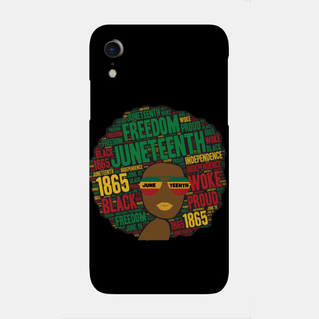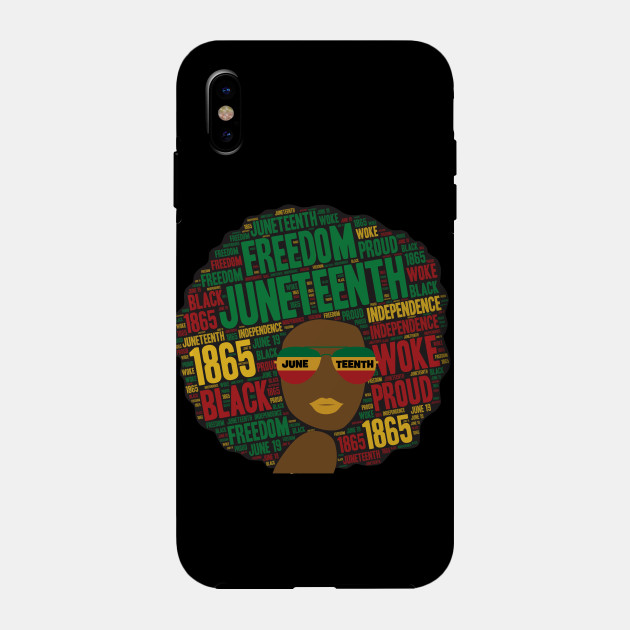 A black girl with an afro and phrases in her afro hair.
