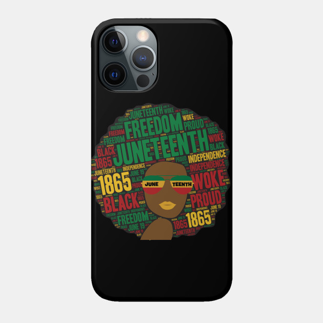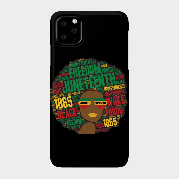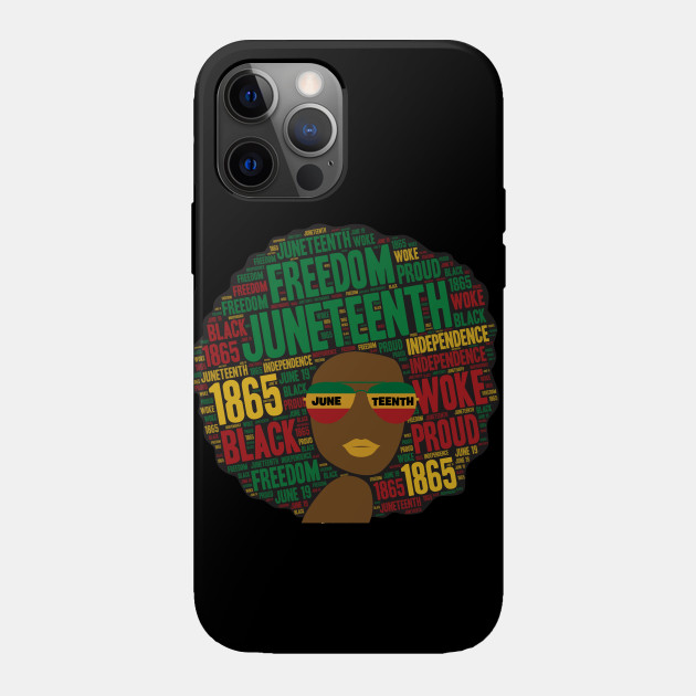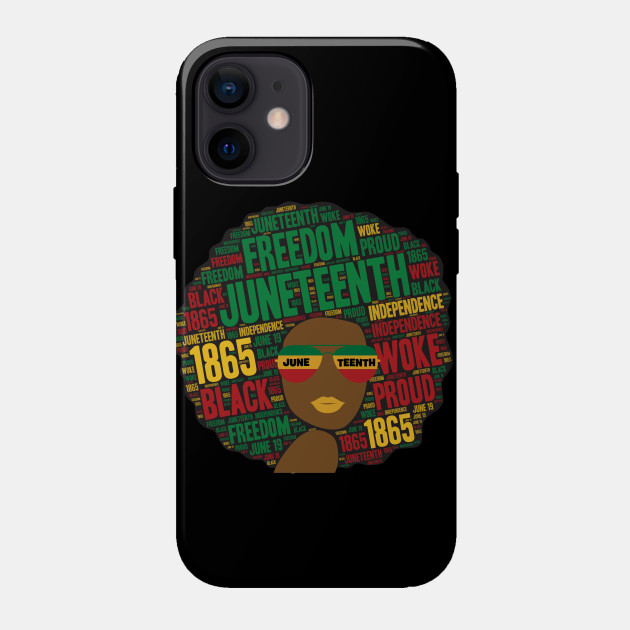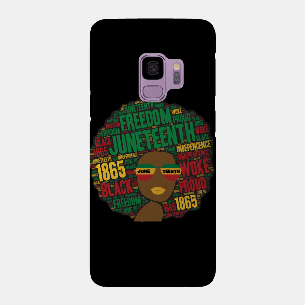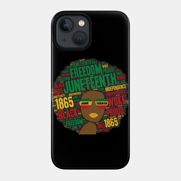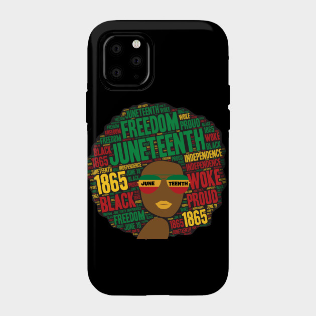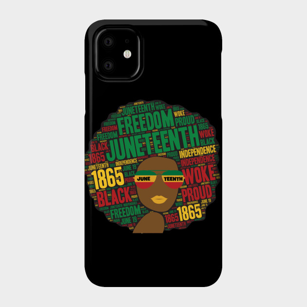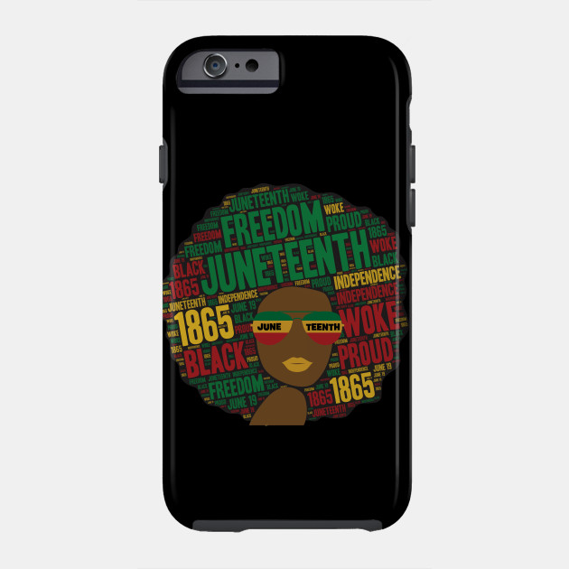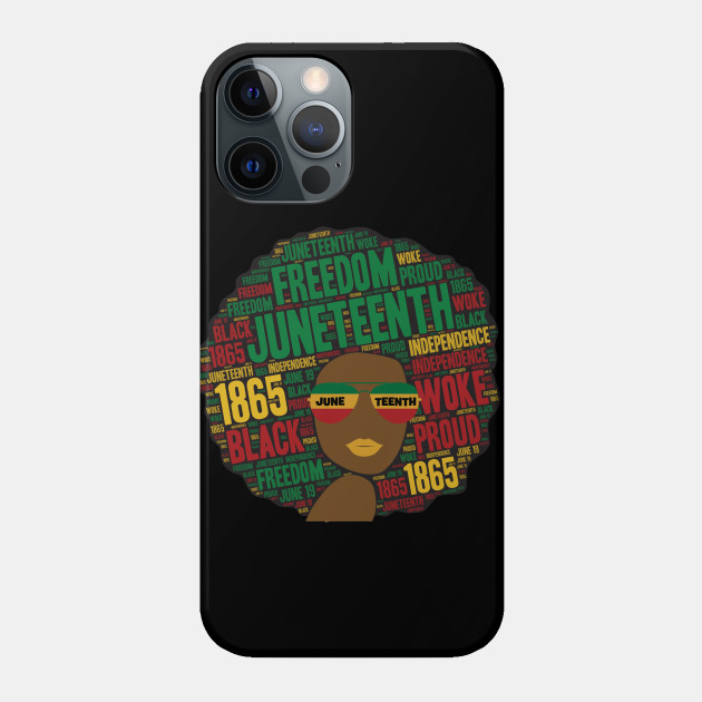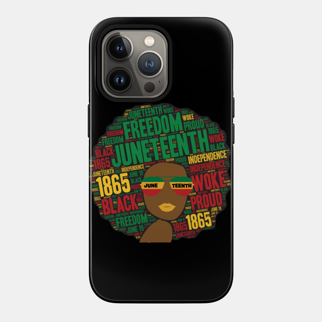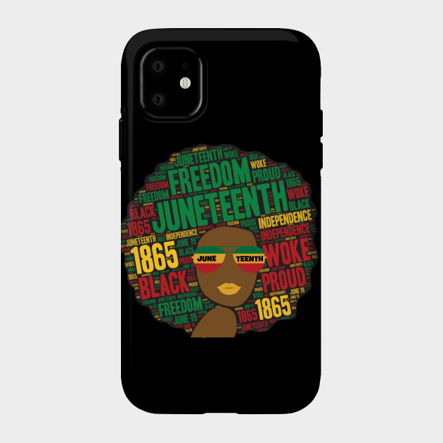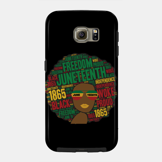 A black girl with an afro and phrases in her afro hair.