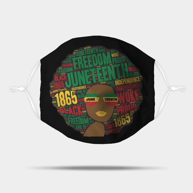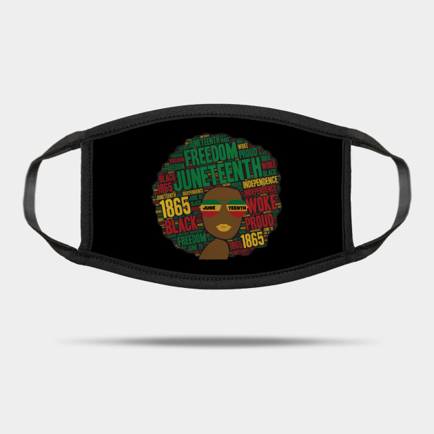 A black lady with an afro and phrases in her afro hair.